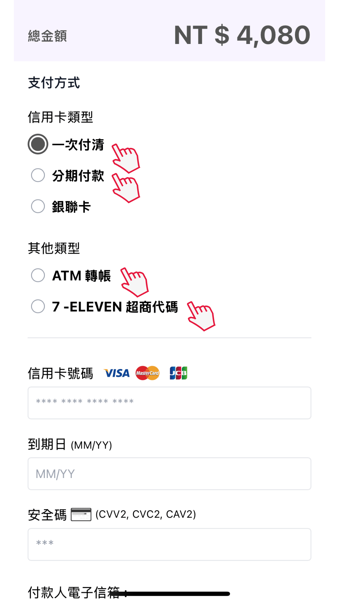 📍如選擇ATM轉帳 / 超商代碼,會寄信箱提供您轉帳帳號或代碼📍