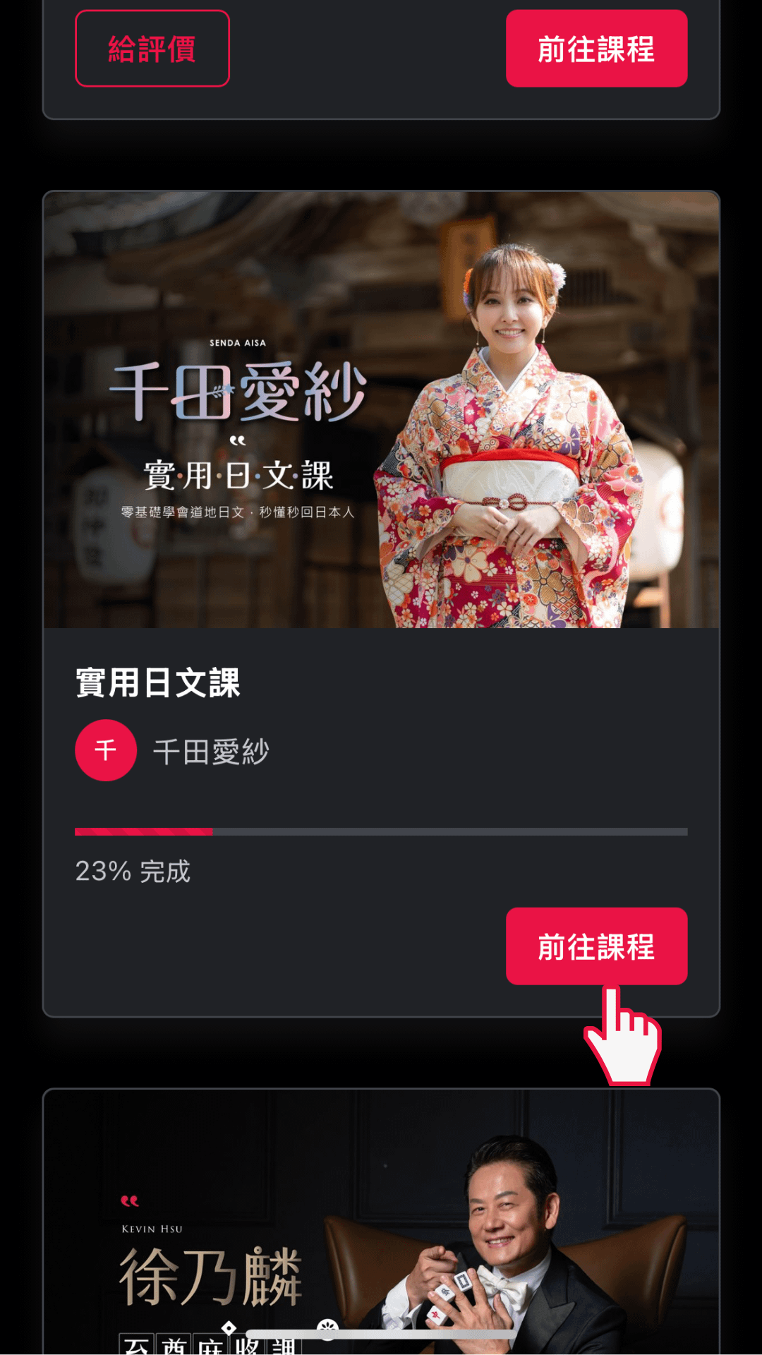 Step4. 進入學習中心會看到你購買的課程。選擇前往課程即可開始上課囉!