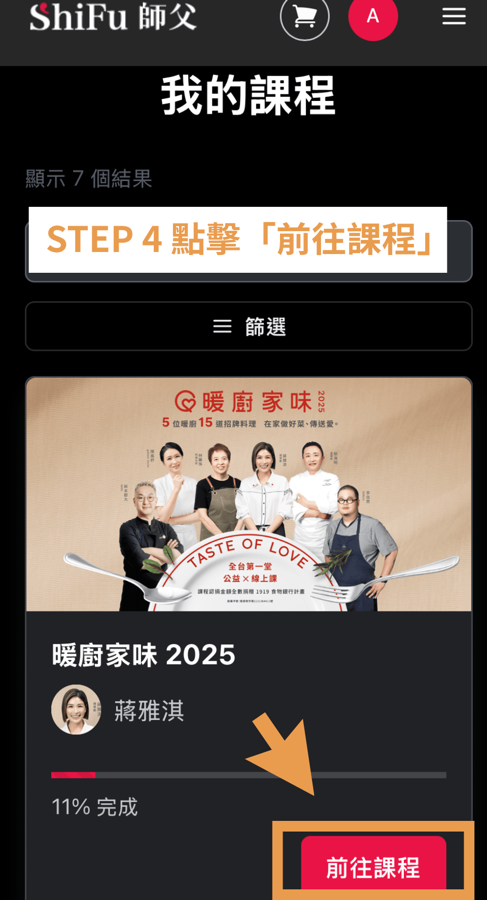 Step 4:向下滑找到課程「暖廚家味 2025 」,點擊「前往課程」